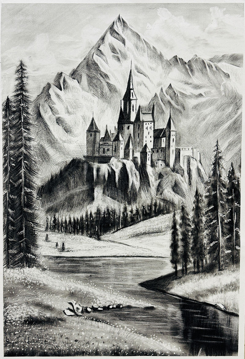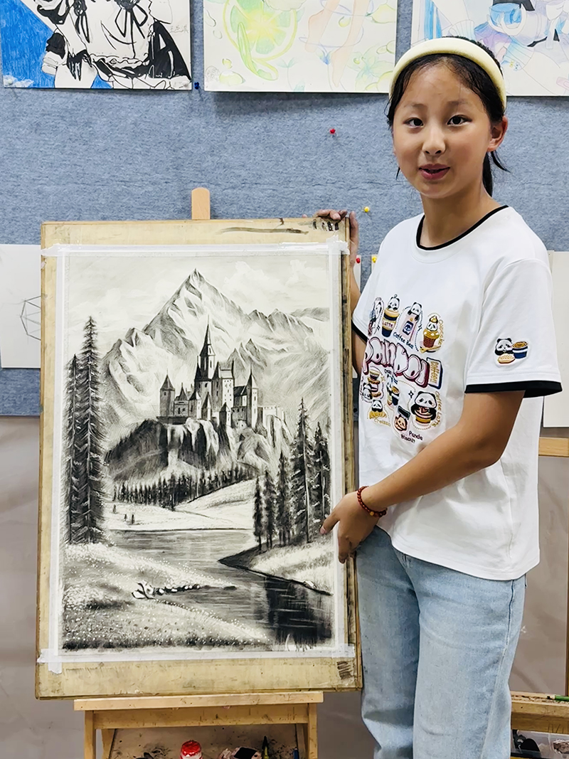 馬溶君:13歲 畫齡:5年 作品名稱: 《2開風(fēng)景素描》 指導(dǎo)教師:李滄順和教學(xué)基地——王海倫