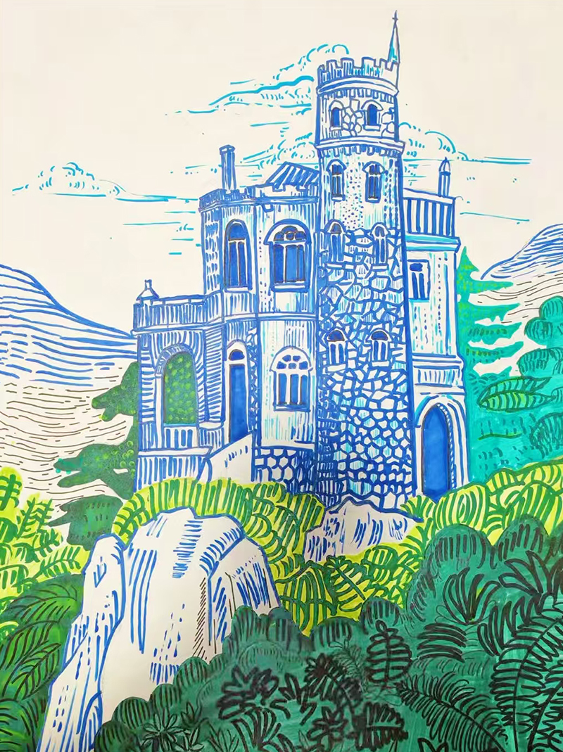 劉航宇:12歲 畫齡:4年 作品名稱:《老城拾光》 指導老師:膠南維客教學基地——徐婭