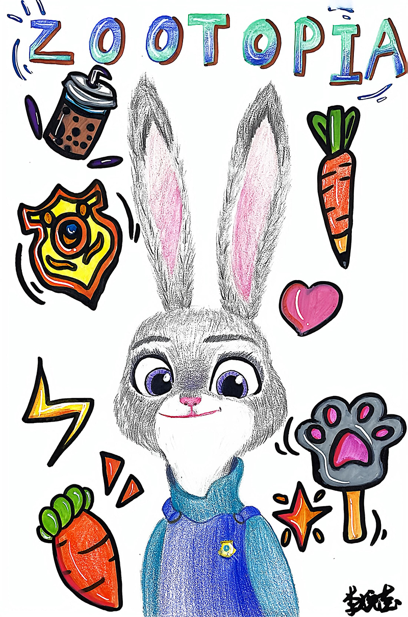 李婉瑩:12歲 畫齡:3年 作品名稱:《朱迪》 指導(dǎo)老師:黃島富春江教學(xué)基地——李彥侖