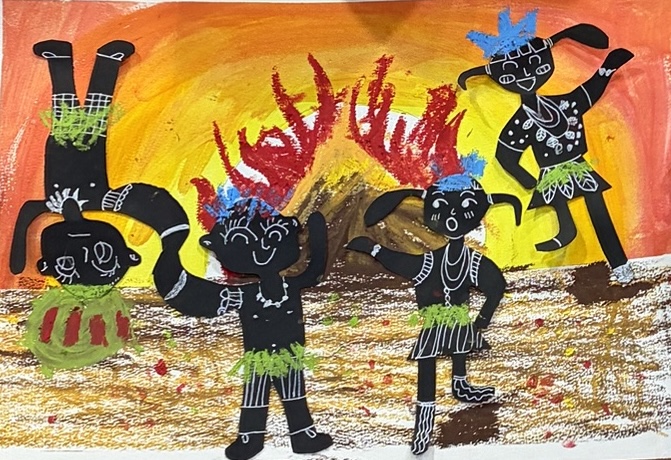 趙岳峰:5歲 畫齡:6個月 作品名稱:《熱情非洲舞》 指導教師:黃島中聯(lián)教學基地——秦敏鴻