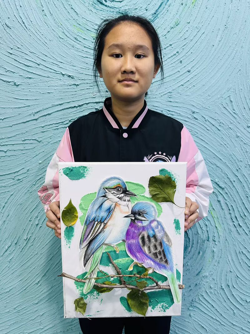 王菲:13歲 作品名稱:《依偎》 指導(dǎo)老師:黃島中聯(lián)教學(xué)基地——王雪