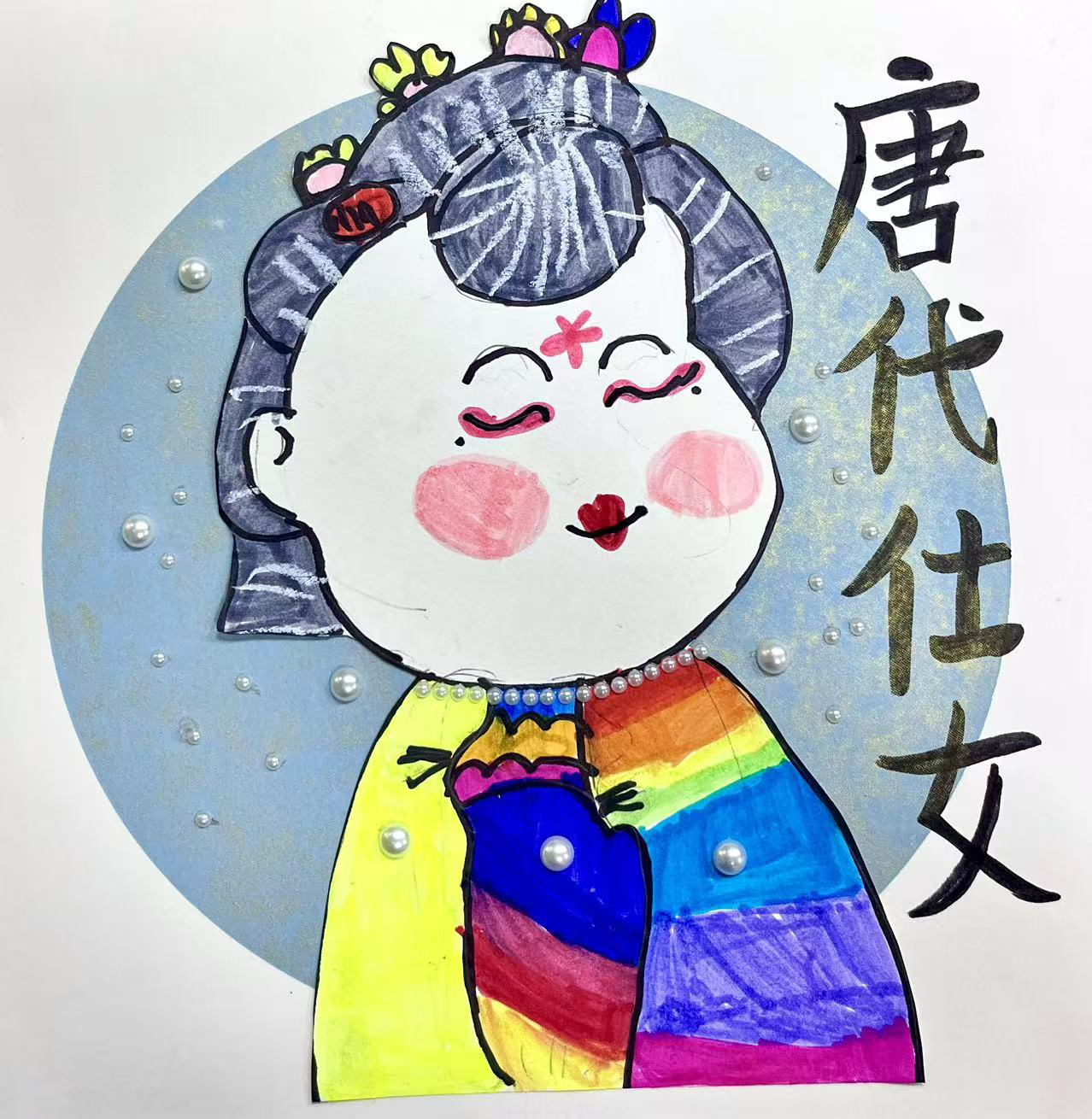 邱好:6歲 畫齡:1年半 作品名稱:《唐代仕女圖》 指導(dǎo)老師:李滄順和教學(xué)基地——劉曉雨