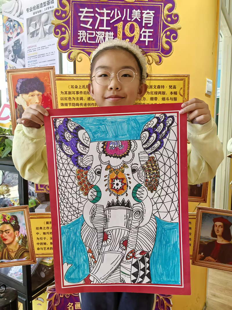 李梓萌:9歲 畫齡:2年半 作品名稱:《動物線描》 指導(dǎo)老師:四方教學(xué)基地——蔣慶華