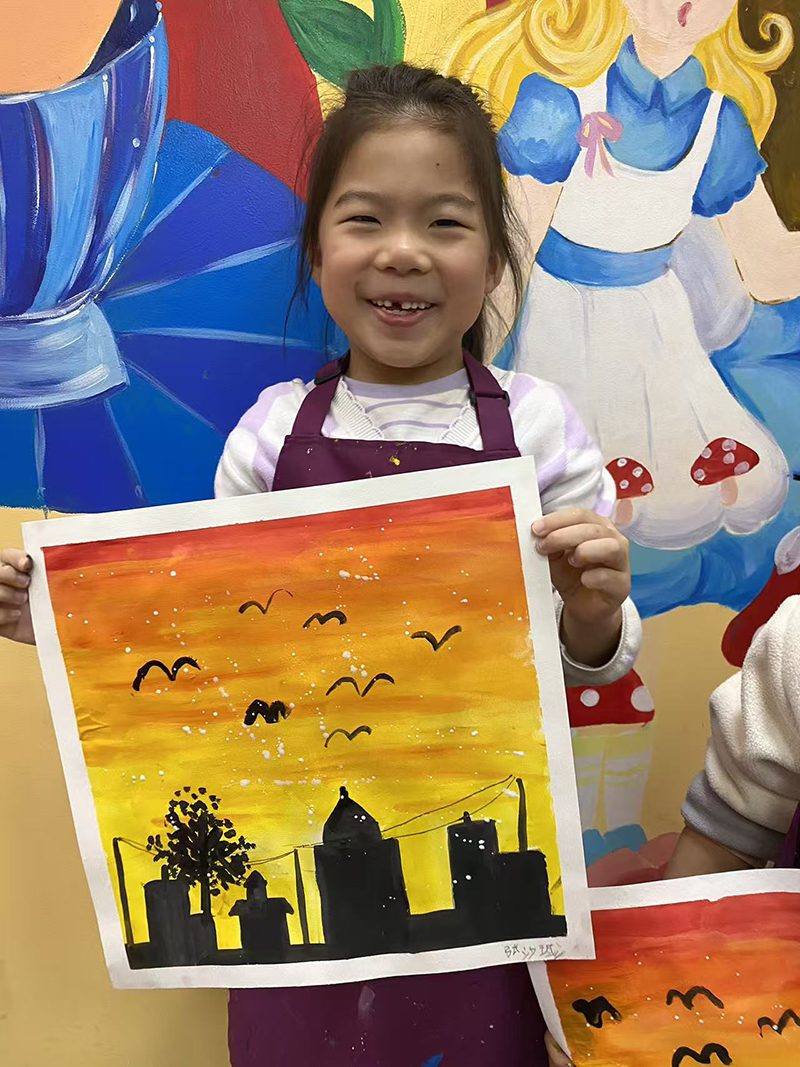 張汐珹:6歲 畫齡:3個月 作品名稱:《火燒云》 指導(dǎo)老師:膠南維客教學(xué)基地——王甜甜