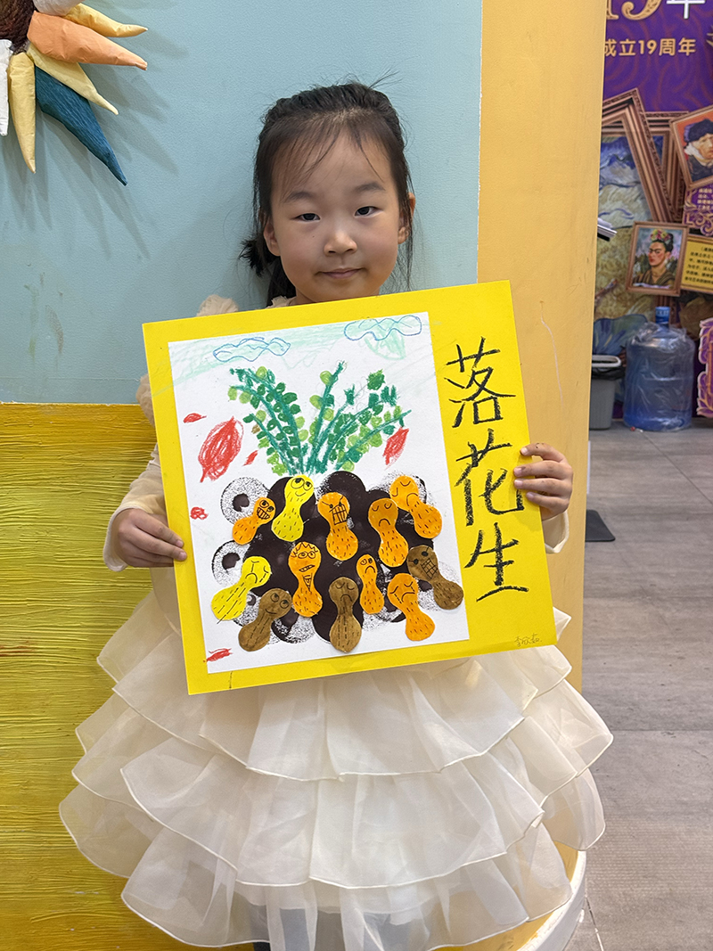 李欣茹:5歲 畫(huà)齡:3個(gè)月 作品名稱(chēng):《落花生》 指導(dǎo)老師:綠城麗達(dá)教學(xué)基地——付開(kāi)心