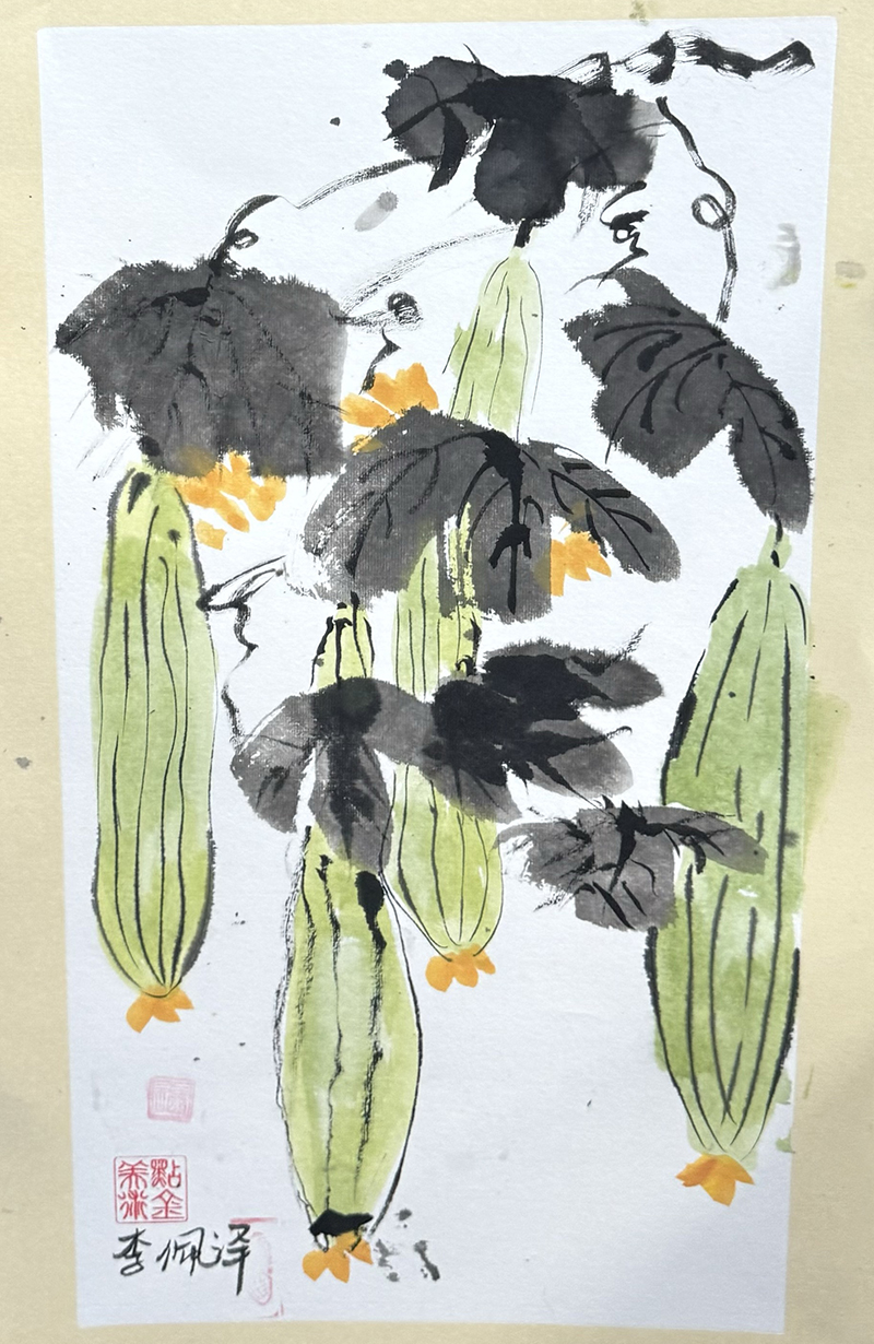 李佩澤:7歲 畫齡:1年 作品名稱:《水墨絲瓜》 指導(dǎo)老師:城陽東方城教學(xué)基地——陳楓儀