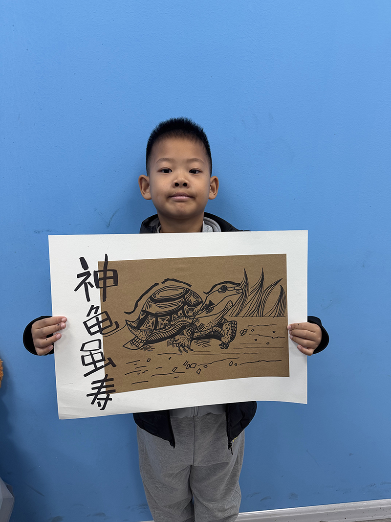 楊弦錚:8歲 畫齡:4年 作品名稱:《神龜》 指導(dǎo)老師:嶗山大拇指教學(xué)基地——李美含