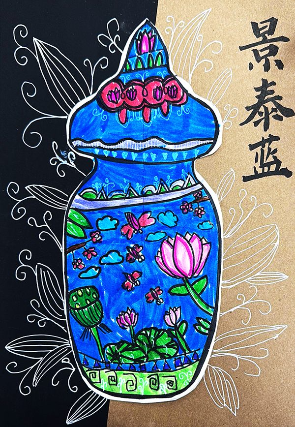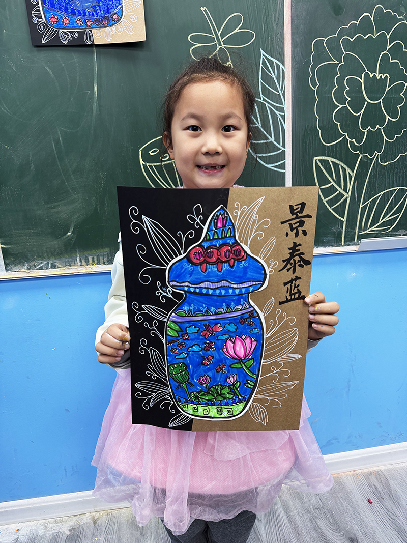 王熙媛:7歲 畫齡:1年 作品名稱:《景泰藍(lán)》 指導(dǎo)老師:嶗山大拇指教學(xué)基地——鐘甜