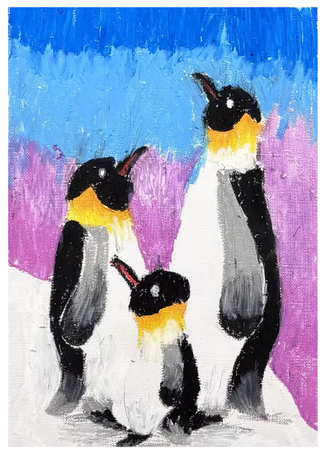 劉欣桐:7歲 畫齡:1年半 作品名稱:《南極帝企鵝》 指導(dǎo)老師:麗達(dá)茂教學(xué)基地——王靜