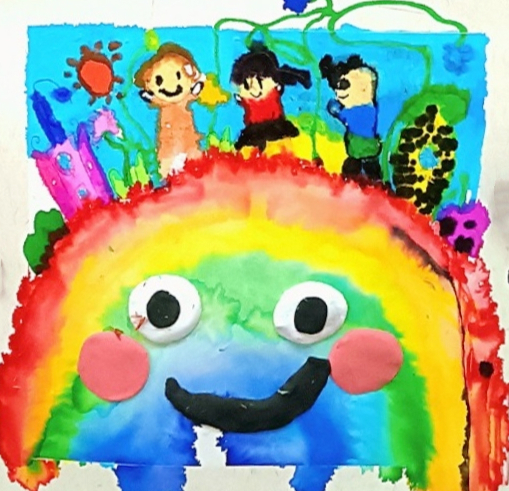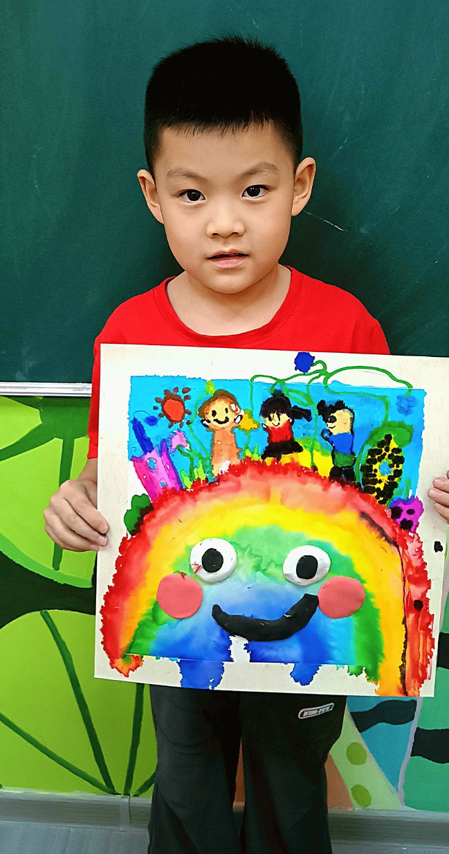 石俊寧:6歲 畫(huà)齡:6個(gè)月 作品名稱(chēng):《我想住在彩虹上》 指導(dǎo)老師:和達(dá)教學(xué)基地——王依然