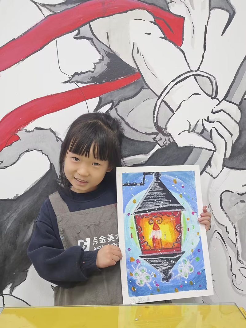 謝鹿鳴:5歲 畫齡:2年 作品名稱:《路燈》 指導(dǎo)老師:中南世紀(jì)城教學(xué)基地——?jiǎng)?
