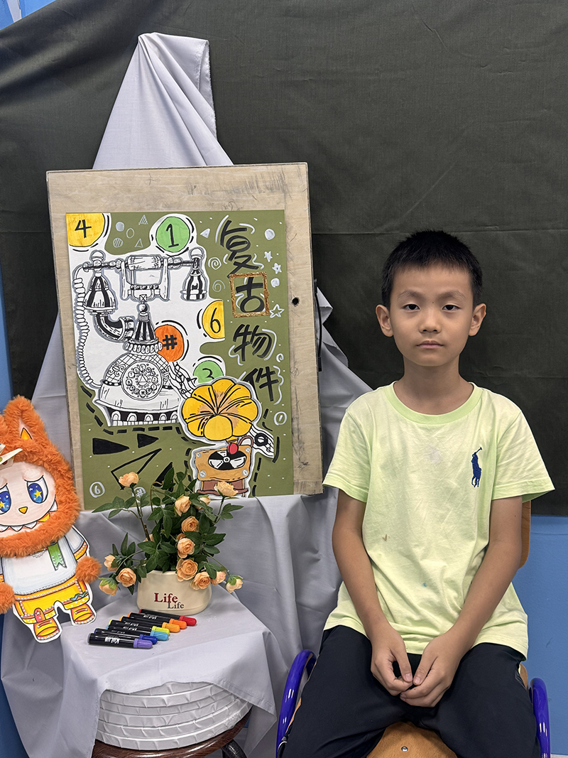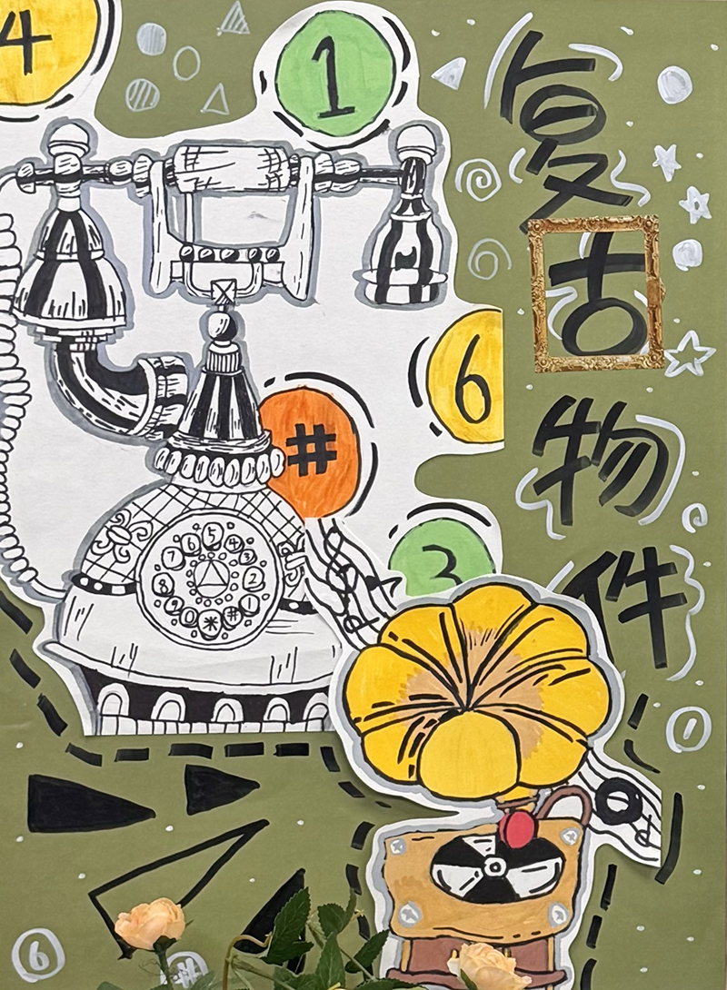 董子航:8歲 畫齡:2年半 作品名稱:《復(fù)古物件》 指導(dǎo)老師:嶗山大拇指教學(xué)基地——李美含