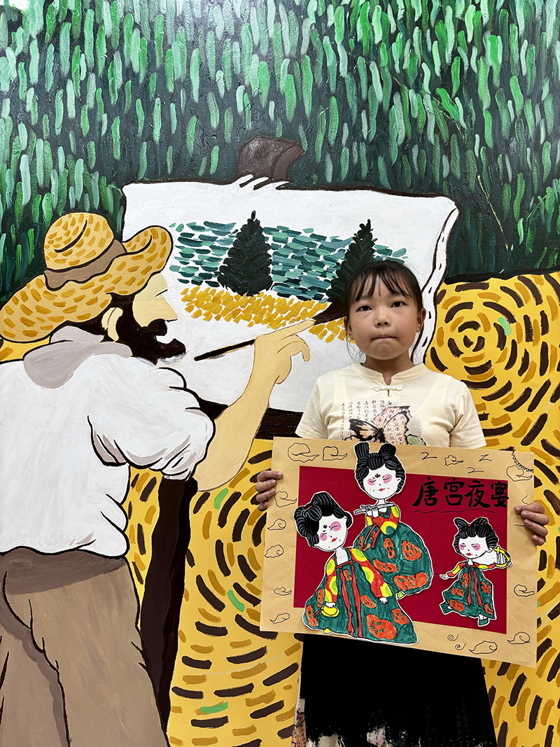 史鉑涵:8歲 畫齡:2年 作品名稱:《唐宮夜宴》 指導(dǎo)老師:麗達(dá)茂教學(xué)基地——王靜