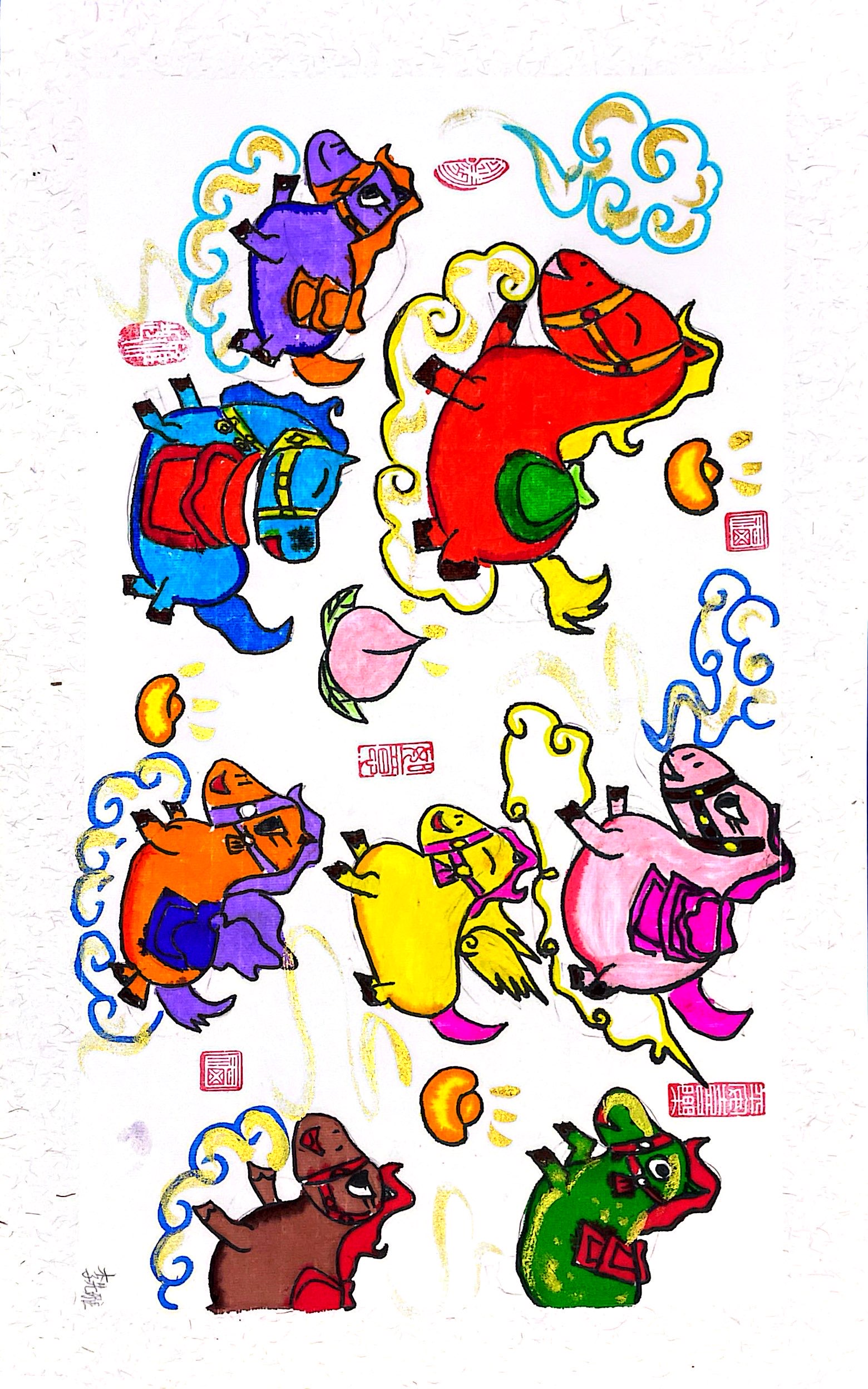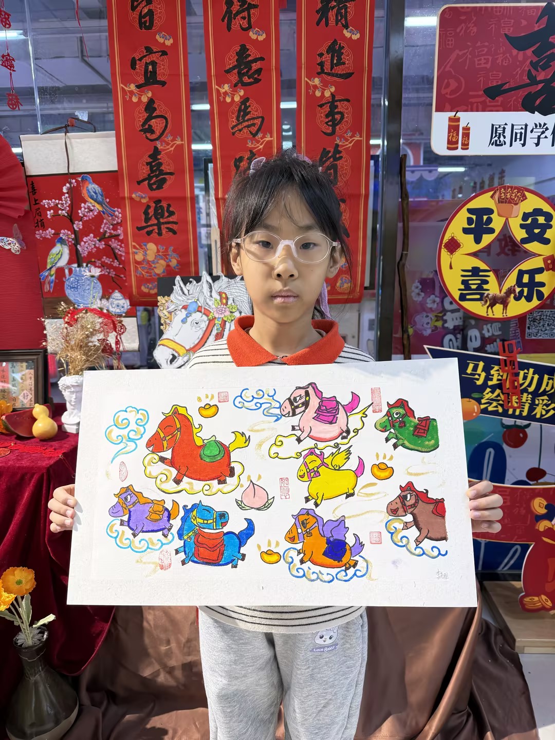 李先雅:7歲 畫齡:3年 作品名稱:《八駿圖》 指導(dǎo)老師:黃島富春江教學(xué)基地——夏夢竹