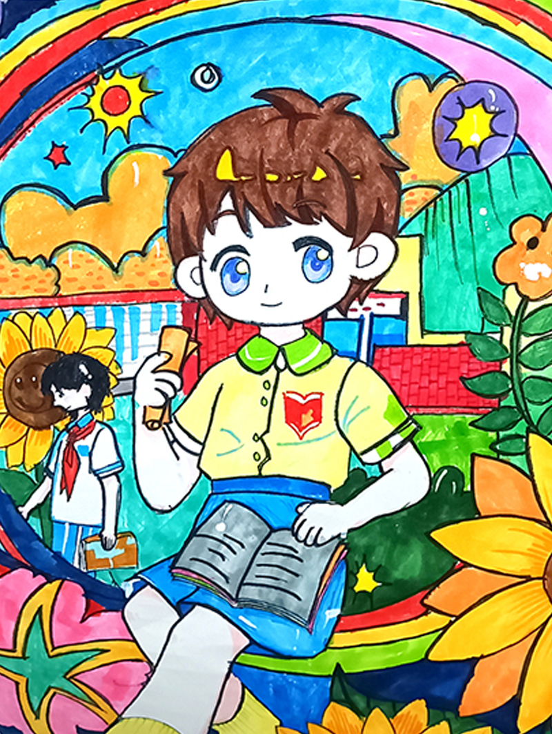 李沐陽:9歲 畫齡:3年 作品名稱: 《美的啟蒙》 指導(dǎo)教師:和達(dá)教學(xué)基地——王怡然