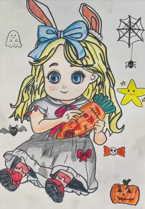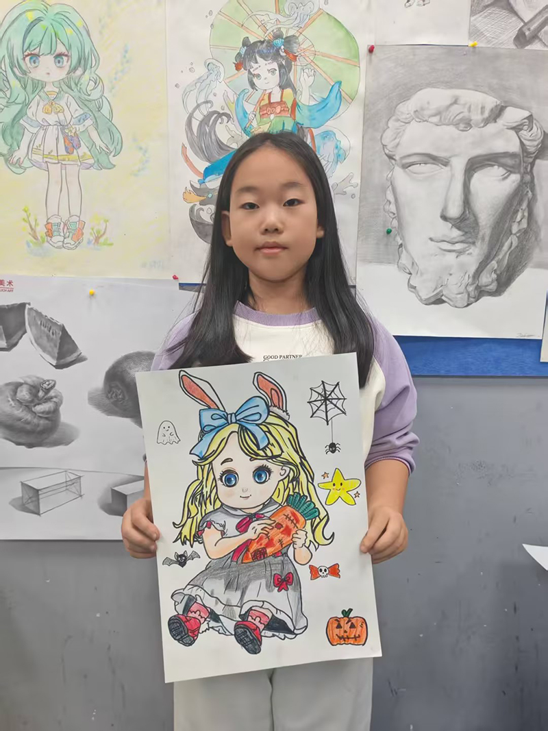 劉璇:9歲 畫齡:3年 作品名稱:《動漫人物》 指導(dǎo)老師:膠南維客教學(xué)基地——徐婭
