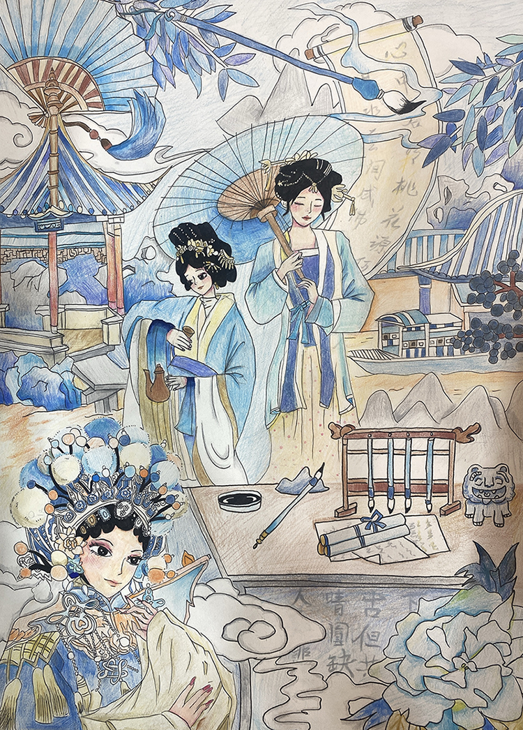 臧力燃:11歲 畫齡:6年 作品名稱:《戲韻人生》 指導教師:和達教學基地——周昱彤