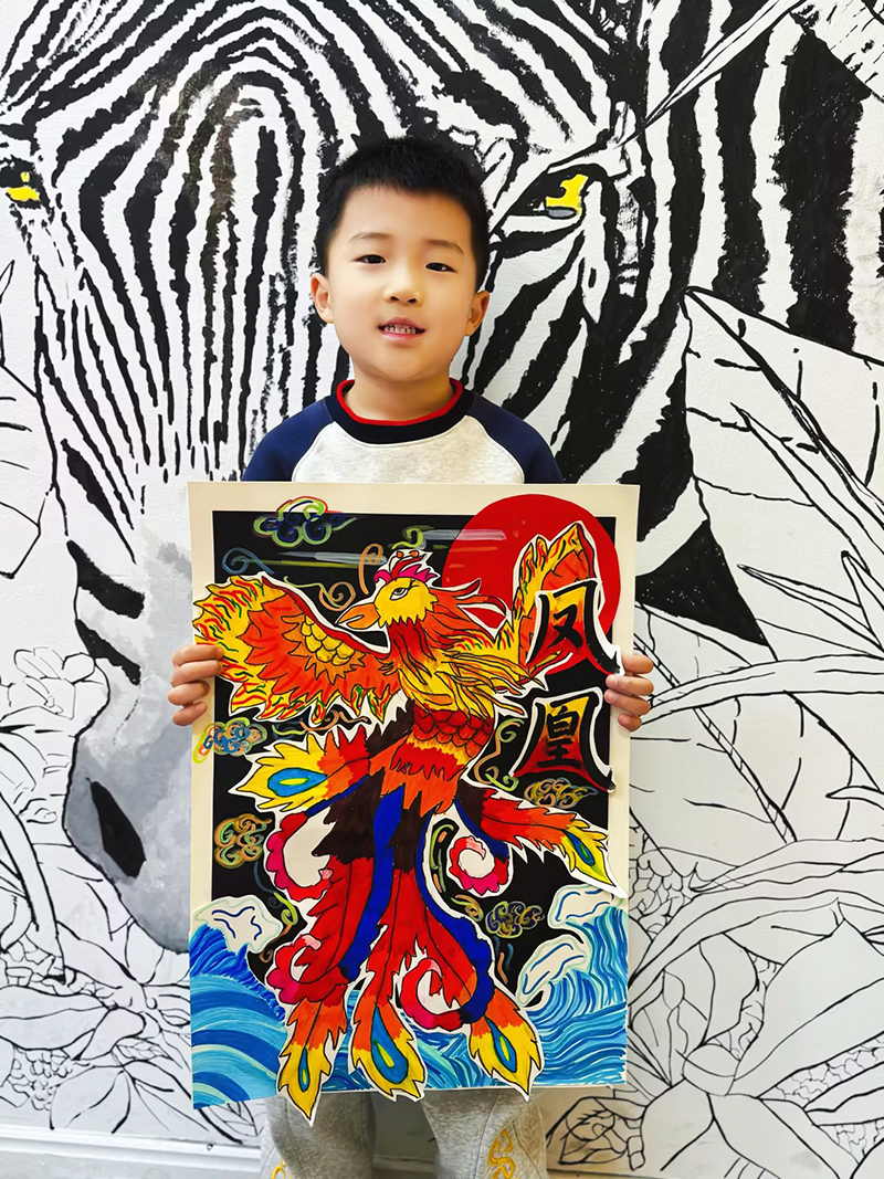 任翊嘉:7歲 畫齡:1年 作品名稱:《涅槃重生》 指導老師:麗達茂教學基地——李美含