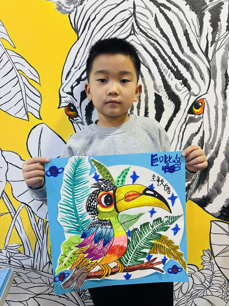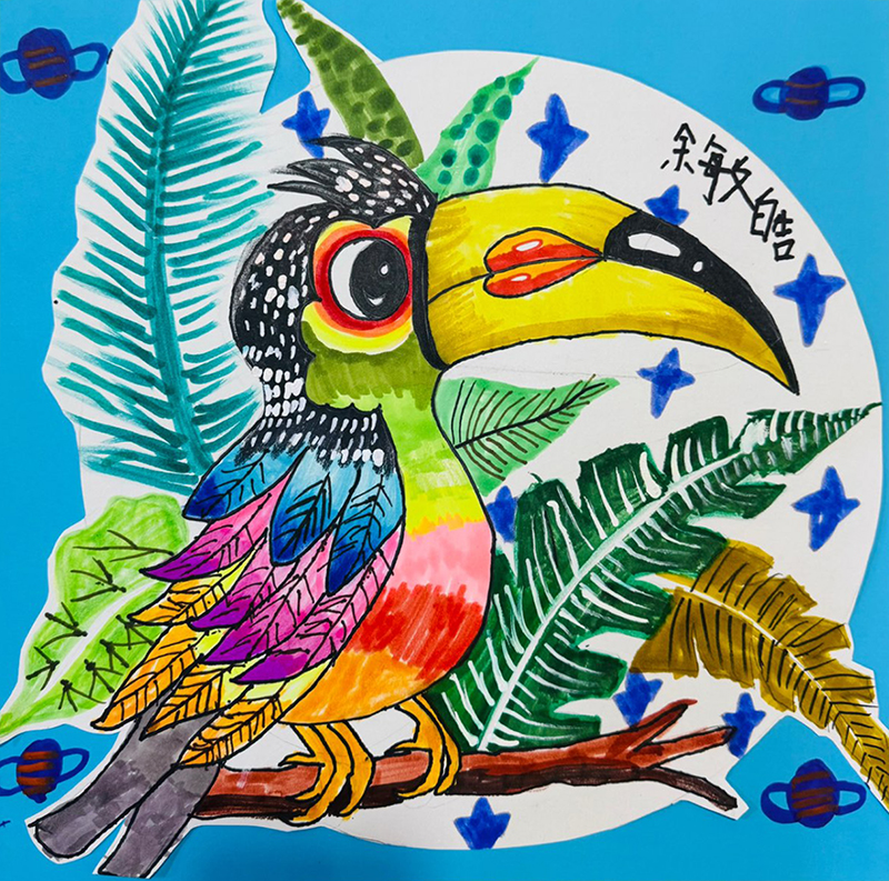 俞敏浩:6歲 畫齡:1年 作品名稱:《巨嘴鳥》 指導(dǎo)教師:黃島中聯(lián)教學(xué)基地——牛娟