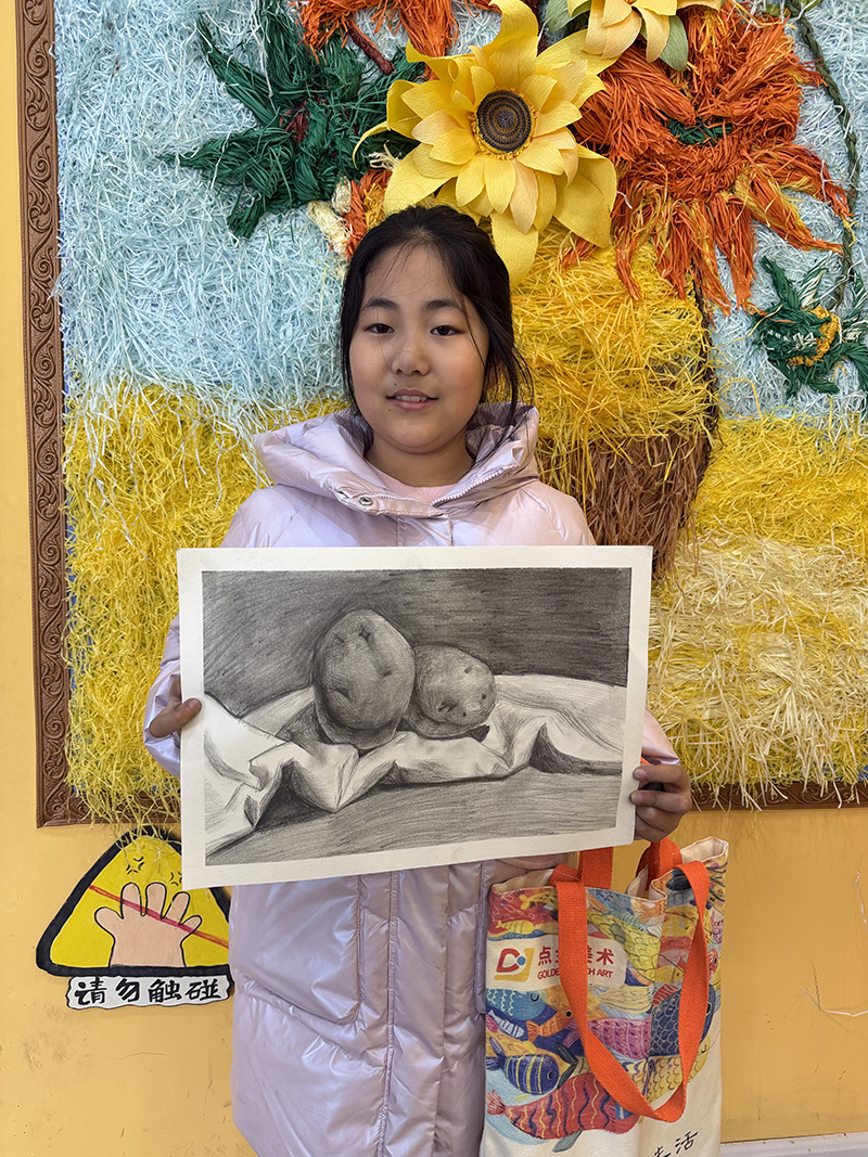 王梓涵:11歲 畫齡:3年 作品名稱:《靜物-土豆》 指導(dǎo)老師:嶗山大拇指教學(xué)基地——李凌燕