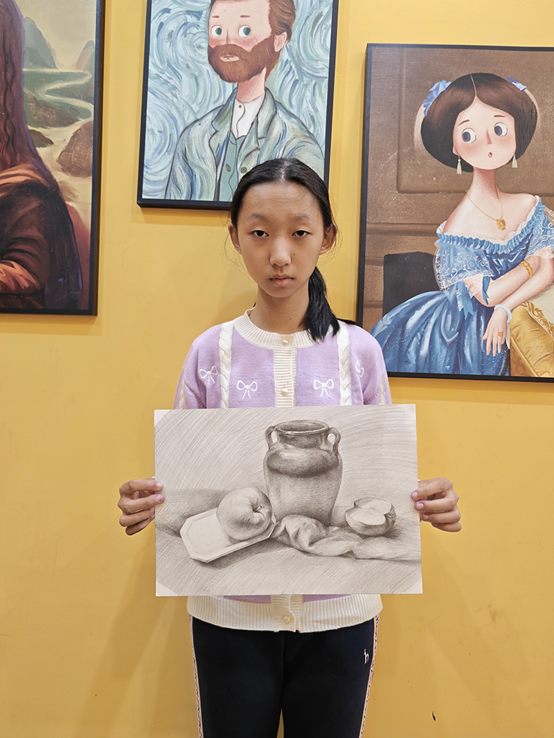 許笑萌:14歲 畫齡:1年 作品名稱:《靜物組合》 指導(dǎo)老師:嶗山大拇指教學(xué)基地——李嘉凱