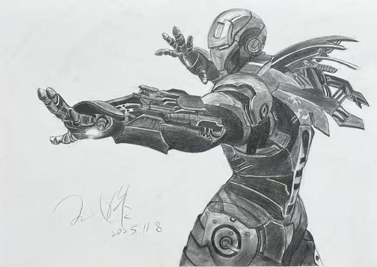 王皓:13歲 畫齡:4年 作品名稱:《鋼鐵俠》 指導(dǎo)老師:李滄順和教學(xué)基地——?jiǎng)⒓?