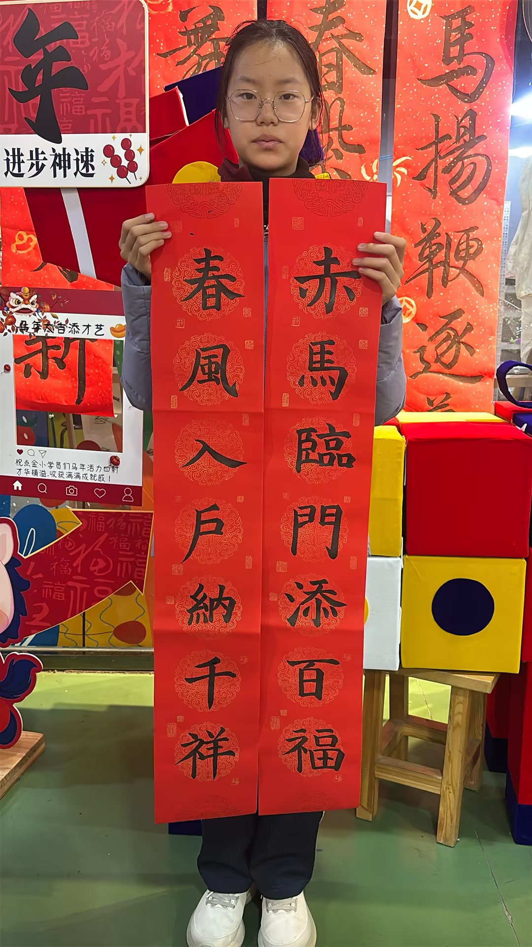 張書溦:13歲 作品名稱:《馬年春聯(lián)》 指導(dǎo)老師:黃島中聯(lián)教學(xué)基地——張心源