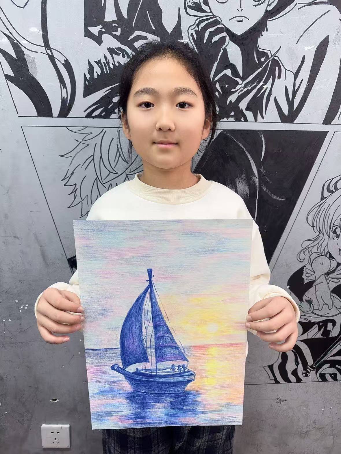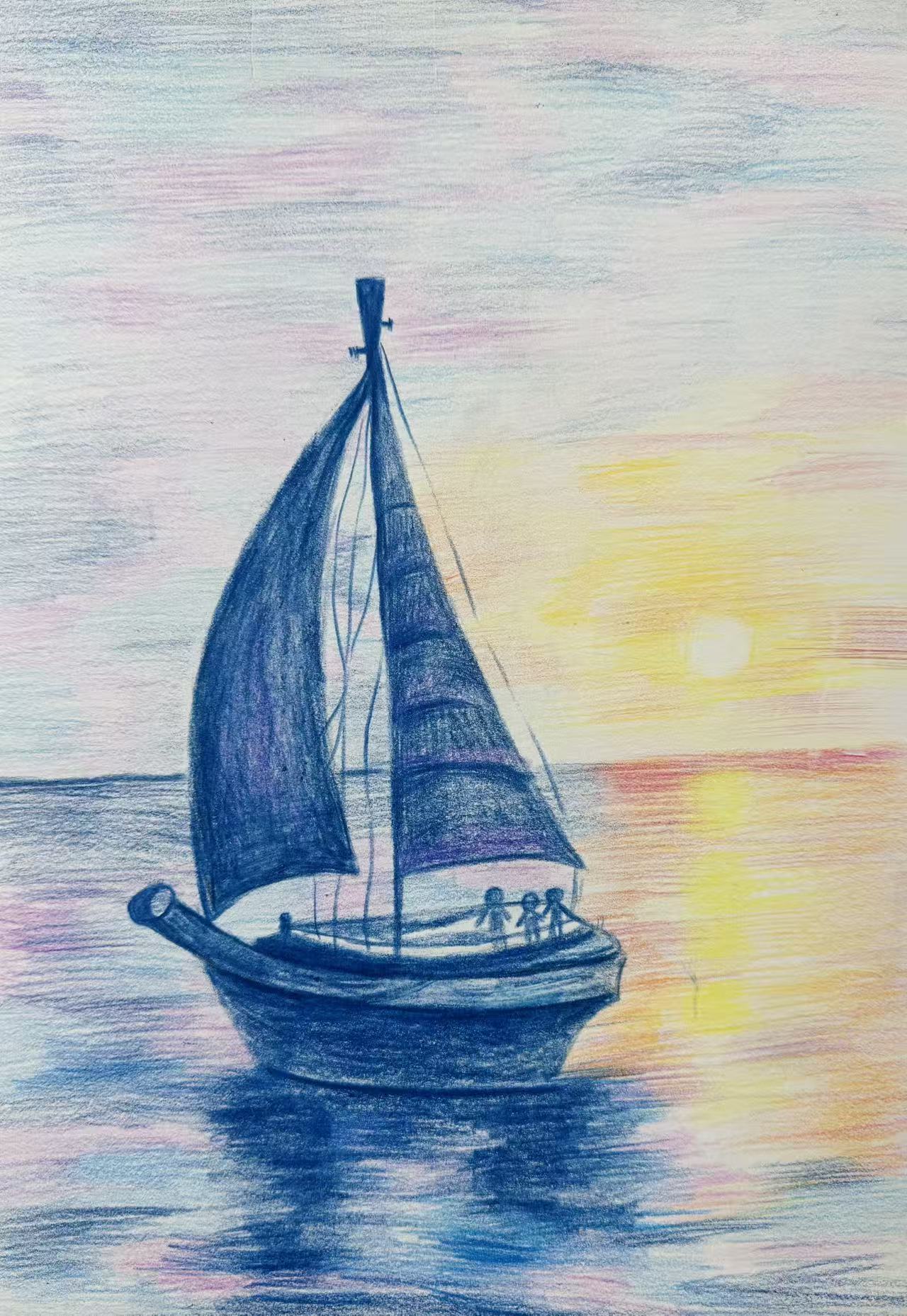 葛宸菲:11歲 畫齡:5年 作品名稱:《帆船》 指導(dǎo)老師:黃島官廳教學(xué)基地——穆婧