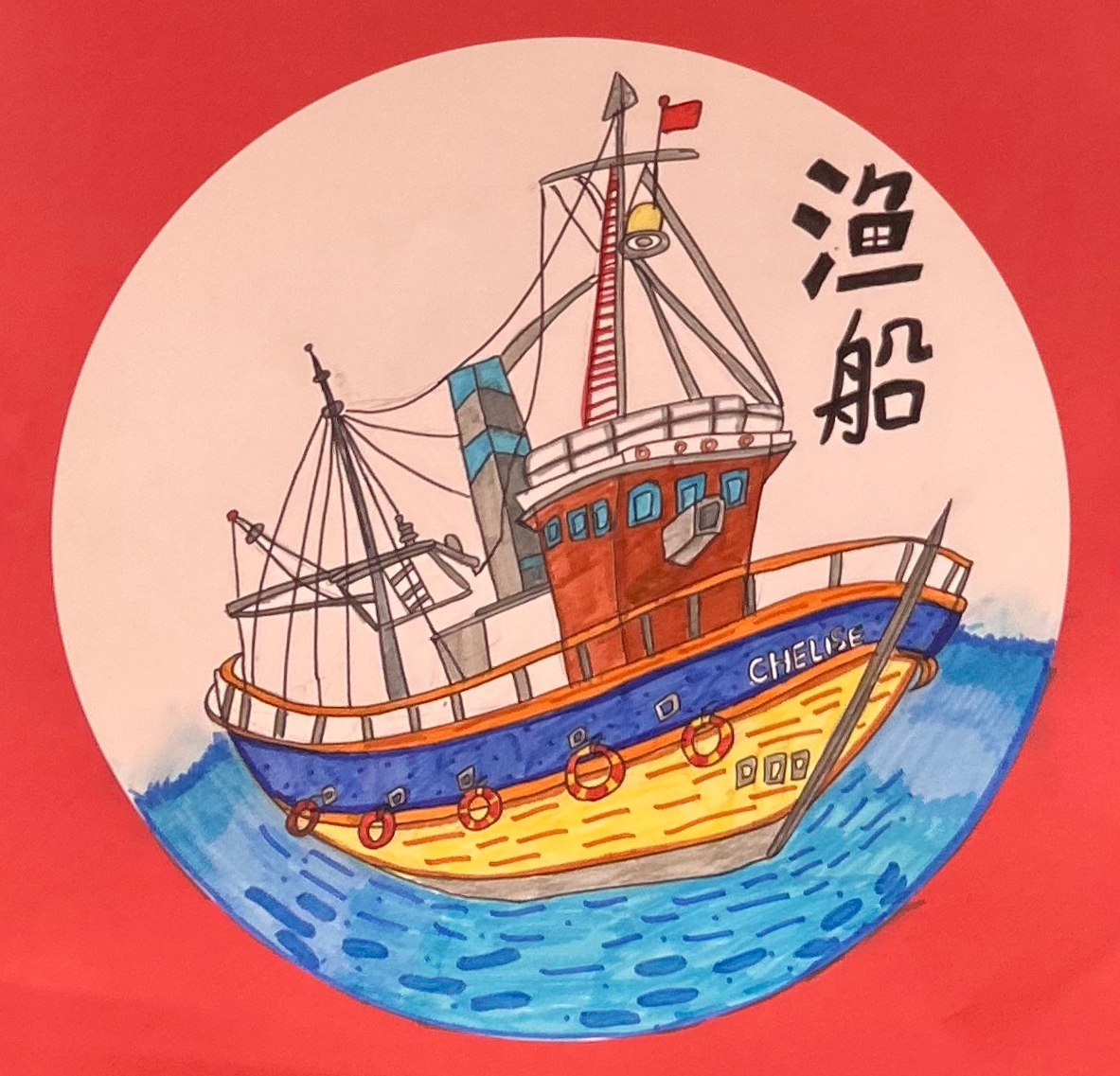 解子琪:10歲 畫齡:3年 作品名稱:《漁船》 指導老師:中南世紀城教學基地——王欣琪