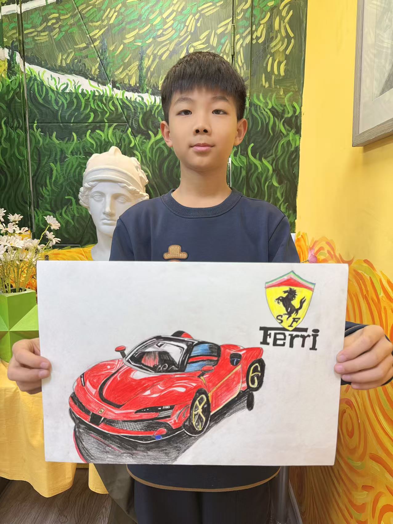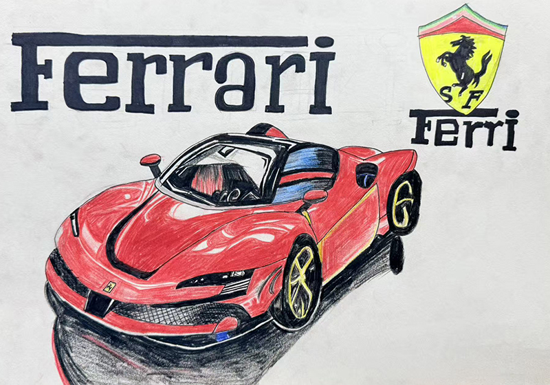 侯皓宸:12歲 畫齡:6年 作品名稱:《法拉利》 指導(dǎo)老師:黃島官?gòu)d教學(xué)基地——張曉琪