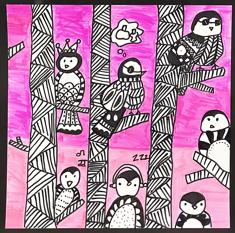 李霖溪:7歲 畫齡:2年 作品名稱:《林中的小麻雀》 指導(dǎo)老師:星光大道教學(xué)基地——王夢瑤