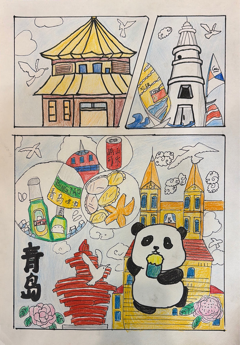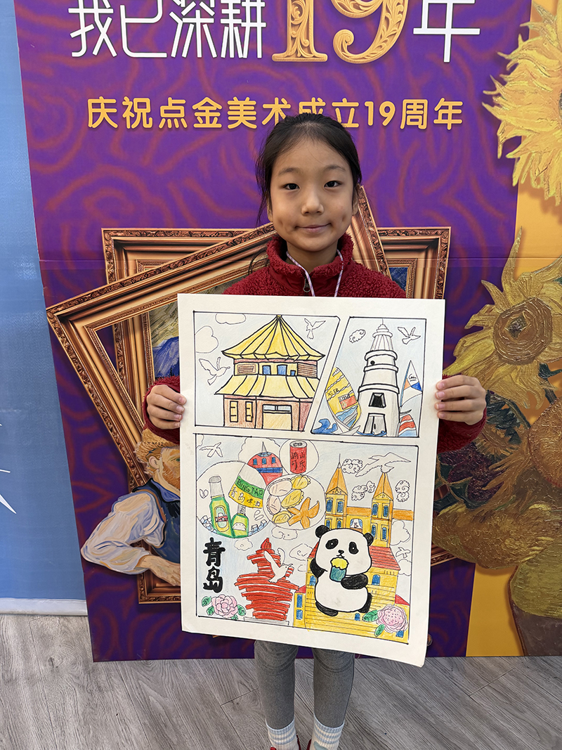 宋胤菲:10歲 畫齡:1年 作品名稱:《青島印象》 指導老師:嶗山大拇指教學基地——李嘉凱