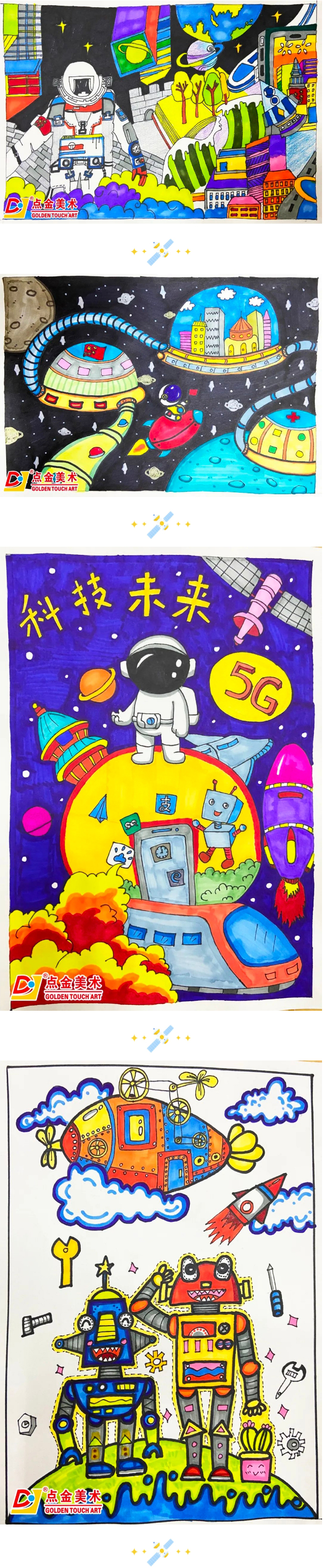 在這個時候,點金美術(shù)的老師們也準備了很多與航天相關(guān)的主題畫,小學員們可以結(jié)合主題畫內(nèi)容進行再次創(chuàng)作,完成一幅精美的以航天為主題的作品,向偉大的航天英雄致敬。