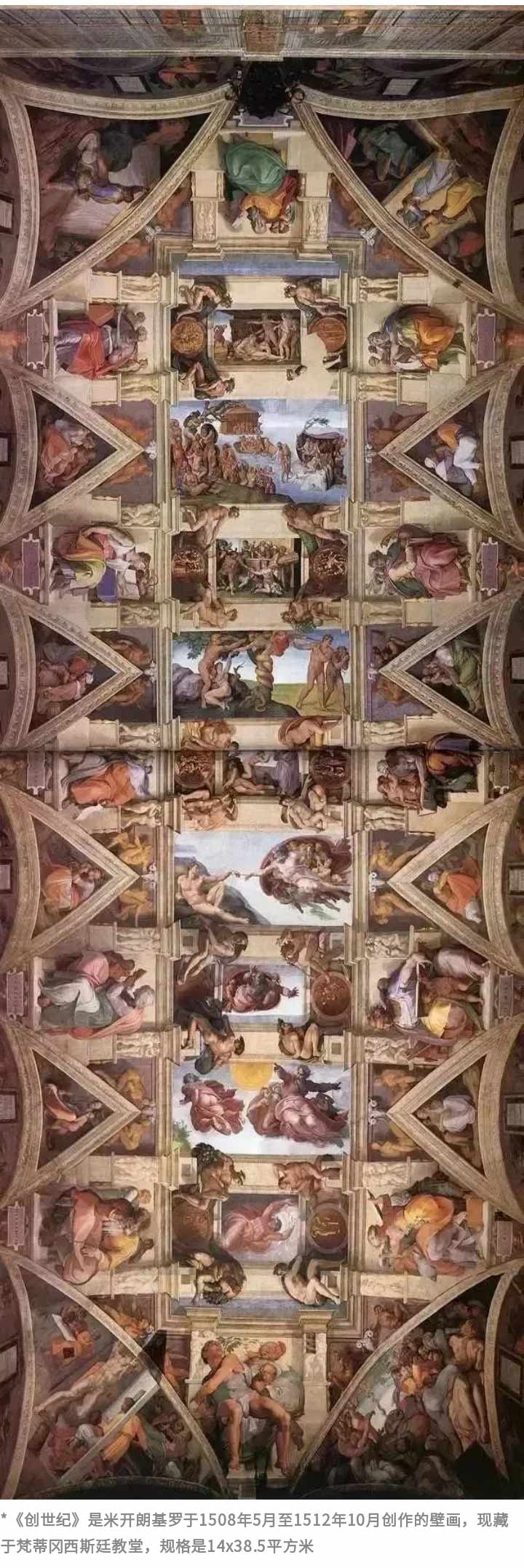 我們今天所說的米開朗琪羅的密碼畫作就是在羅馬梵蒂岡西斯汀教堂的那幅600平米天花壁畫《創(chuàng)世紀(jì)》。