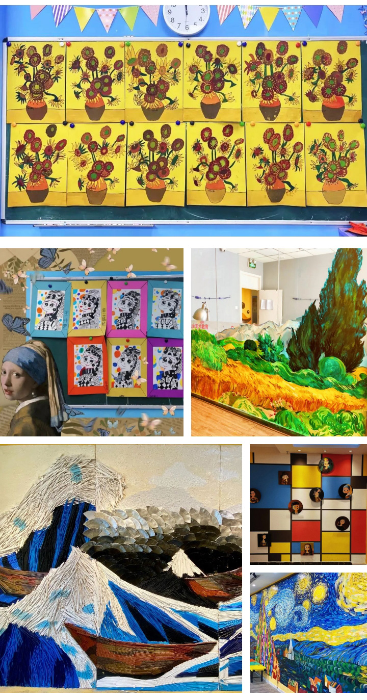 不難看出拉斐爾的成功除了自身的天賦和努力外,他站在巨人的肩膀上,不斷吸取大師們身上的優(yōu)點(diǎn),運(yùn)用在自己日常的創(chuàng)作中,使自己更加優(yōu)秀。在點(diǎn)金美術(shù)的課程中,老師們也設(shè)置了臨摹大師作品的課程,同樣在校區(qū)的環(huán)創(chuàng)中也有大師作品的身影,通過(guò)讓孩子們與大師不斷“接近”的方式,來(lái)豐富、完善自己。