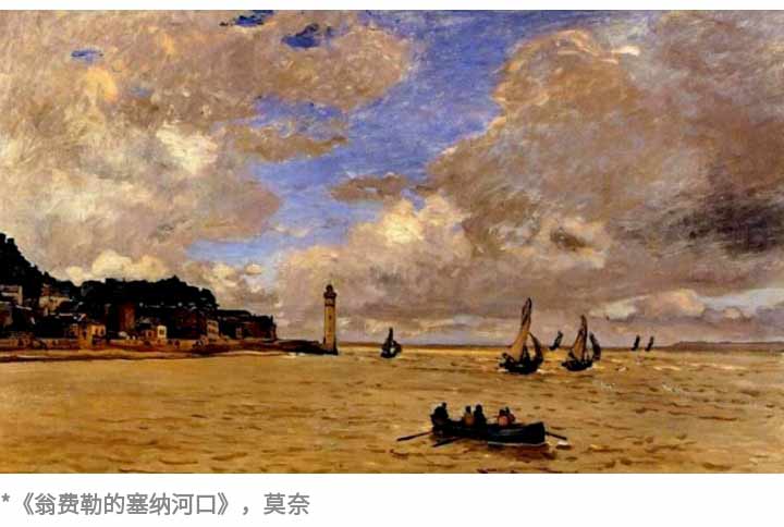 在莫奈的經(jīng)典名畫《翁費(fèi)勒的塞納河口》中,總體色調(diào)偏暖,但給人的感覺帶點(diǎn)暗沉和陰郁。將色彩剖析開來,會(huì)發(fā)現(xiàn)即使同是暖色調(diào),也可以色彩層次極為豐富,明暗變化間色彩柔和地過渡。