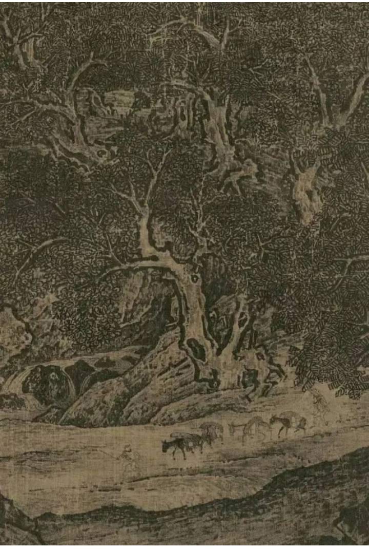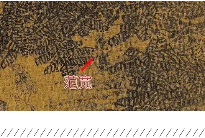 藏在山林里的“秘密”,落款“范寬”隱匿于闊葉樹陰的夾隙中, 范寬把自己看作滄海一粟,一片葉下,便可寄托全部思緒。