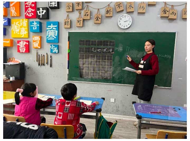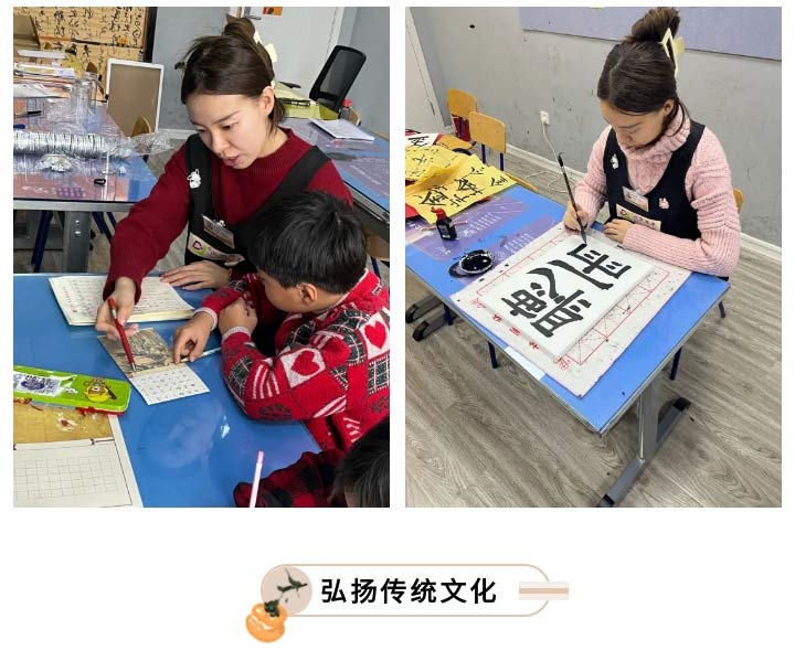 對(duì)于書法課程,點(diǎn)金更有一些獨(dú)特的優(yōu)勢,談到這一點(diǎn)時(shí)高雪萌老師講道:“點(diǎn)金使用原創(chuàng)的教材,從控筆訓(xùn)練到行楷練習(xí),每個(gè)階段的課程內(nèi)容都是環(huán)環(huán)相扣的,根據(jù)孩子的成長規(guī)律,和漢字的使用頻率入手設(shè)置教材,更具有實(shí)用性。按學(xué)期授課,期末安排結(jié)課測試,讓練習(xí)效果更直觀的展示出來。我們希望,孩子來上課的每一個(gè)瞬間,都是豐富的、有趣的、有溫度的。其次,書畫結(jié)合是點(diǎn)金的一大特色跨學(xué)科合作項(xiàng)目,書畫同源,美術(shù)和書法本就關(guān)系密切、相輔相成,我們每學(xué)期都會(huì)開展書法與美術(shù)合作的課程,培養(yǎng)學(xué)生的綜合能力和跨學(xué)科思維,更大限度的提升學(xué)員們的審美素質(zhì)?!?/span>