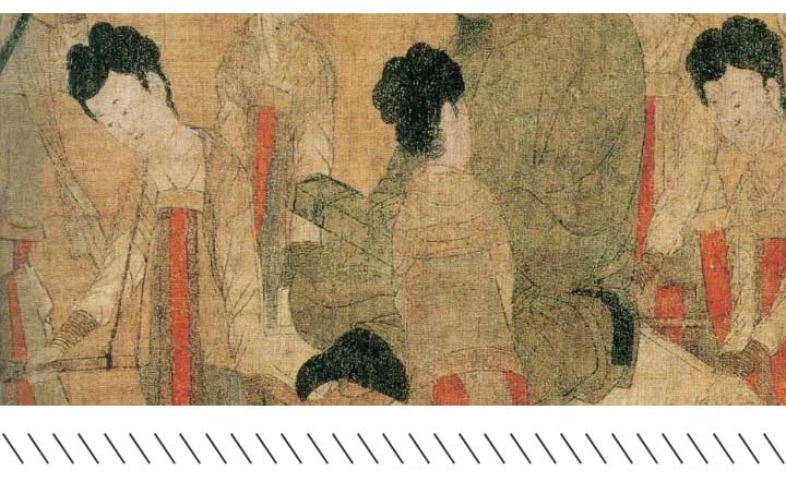 從構圖的角度來講,這幅畫很明顯將所有人物分成兩組,一張一弛、一柔一剛,讓人的視覺得到了充分的享受。就像彈琴時的左手伴奏一樣,穩(wěn)健而低沉;右手高音區(qū)炫音技巧的展示,華麗而不俗;一唱一和,和諧有序。