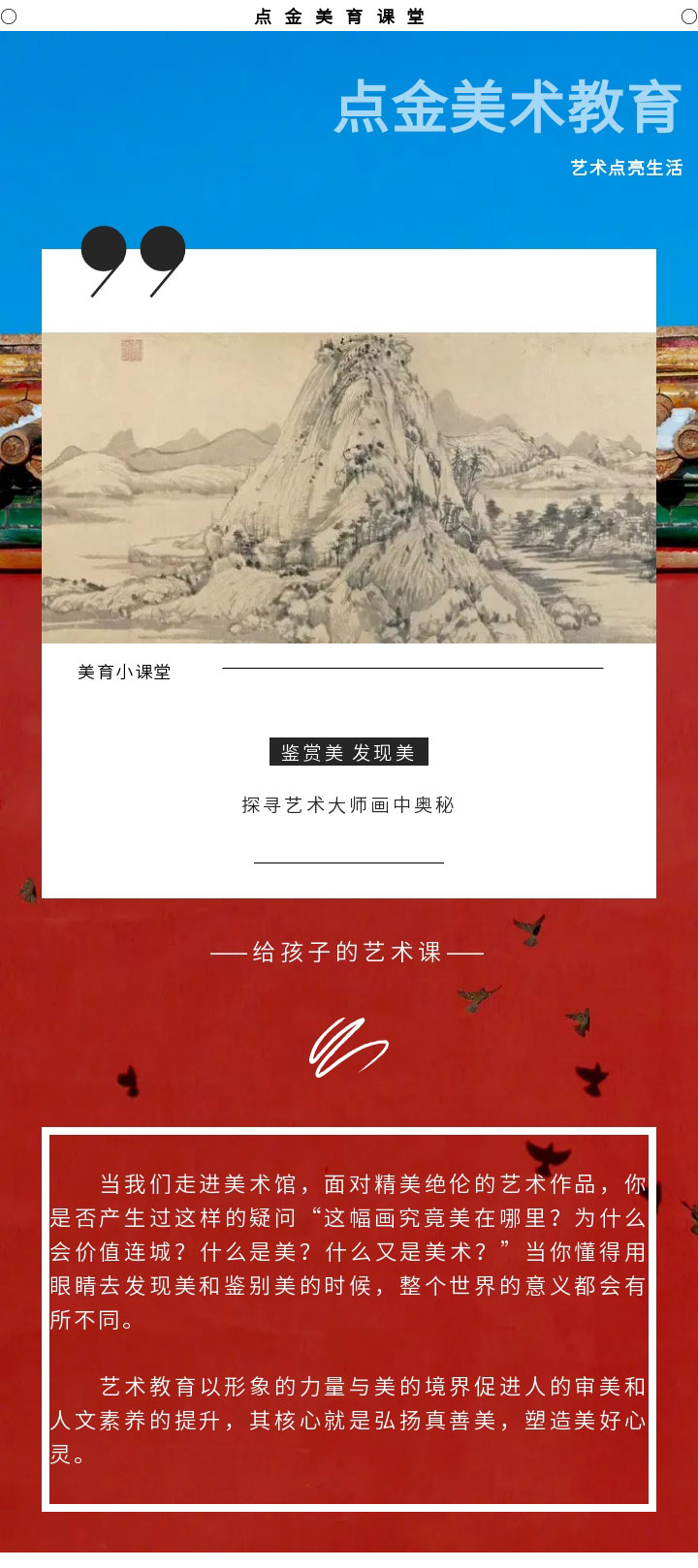 在【點金美術(shù)官方服務(wù)號】的日常更新中,加入名畫的作品介紹和欣賞的內(nèi)容,貼合校內(nèi)美育教育,以此全面發(fā)展學生的美術(shù)核心素養(yǎng)。