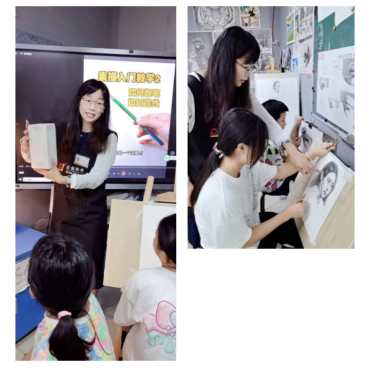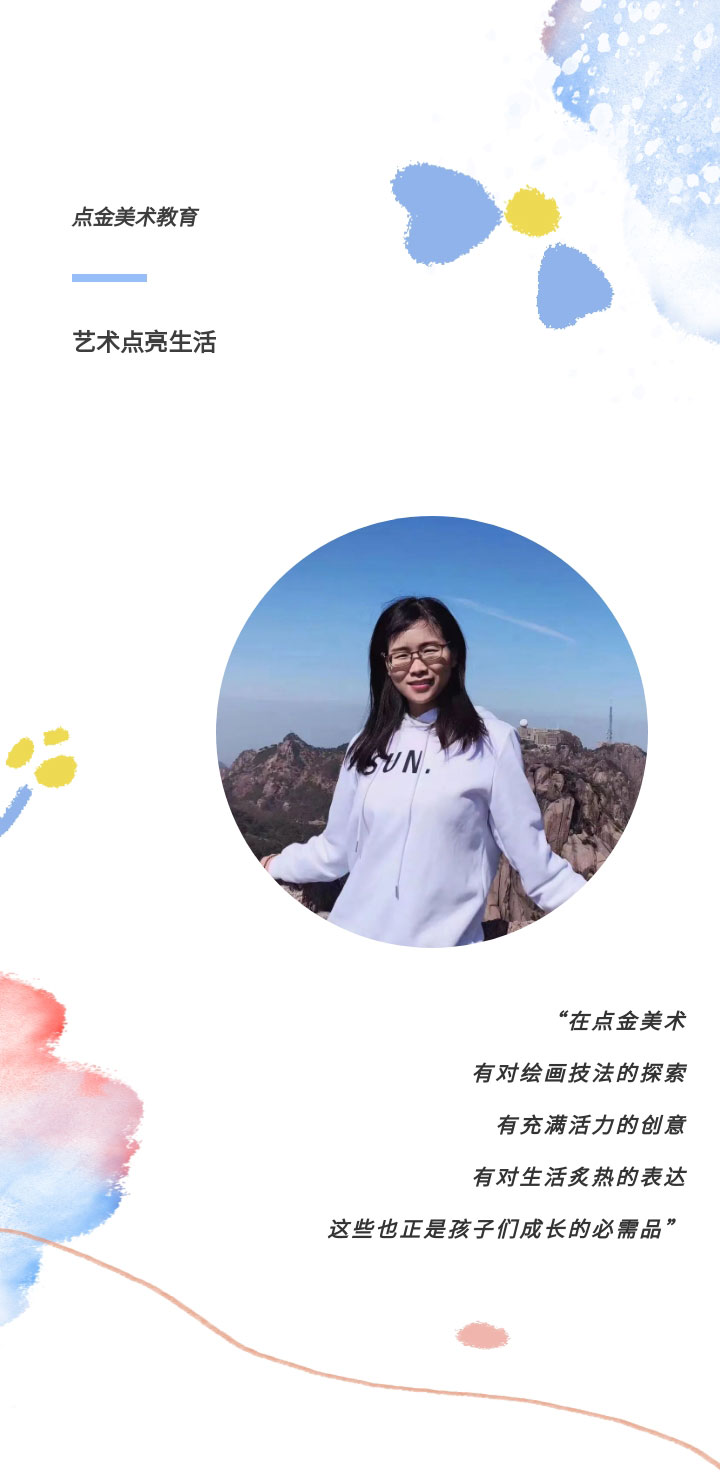 今年是秦江蘋老師加入點(diǎn)金的第六年,作為一名李滄星光大道教學(xué)基地的美術(shù)老師,她說:“看到學(xué)員們從對(duì)繪畫一無所知到逐漸掌握技巧,再到獨(dú)立創(chuàng)作出令人驚嘆的作品,這是我最大的成就和滿足?!倍鳛辄c(diǎn)金美術(shù)教研組中的一員,她說:“參與此次《第九版原創(chuàng)青少兒美術(shù)、書法教學(xué)課程體系》的研發(fā)經(jīng)歷讓我更加認(rèn)識(shí)到,只有不斷創(chuàng)新和精進(jìn),才能讓我們的課程更加適應(yīng)學(xué)員的發(fā)展需求和時(shí)代的變化。”
