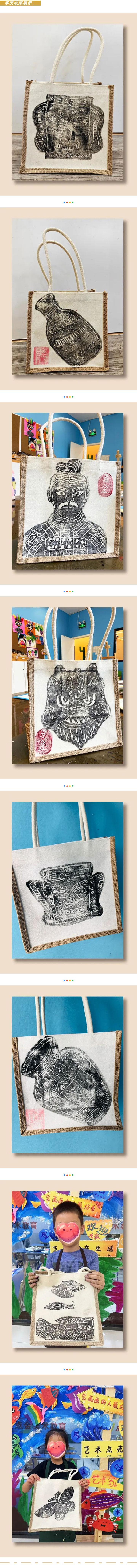版畫與手提袋相結(jié)合,制作出一個(gè)個(gè)獨(dú)一無二的手袋,這也是環(huán)保理念的傳播,讓藝術(shù)點(diǎn)綴孩子們的生活。