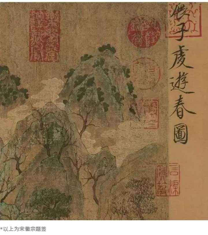 《游春圖》是畫家留存下來(lái)的唯一作品,北宋時(shí)經(jīng)宋徽宗題簽“展子虔游春圖”六字,約在宋室南遷之際散出,后歸奸臣賈似道所有。