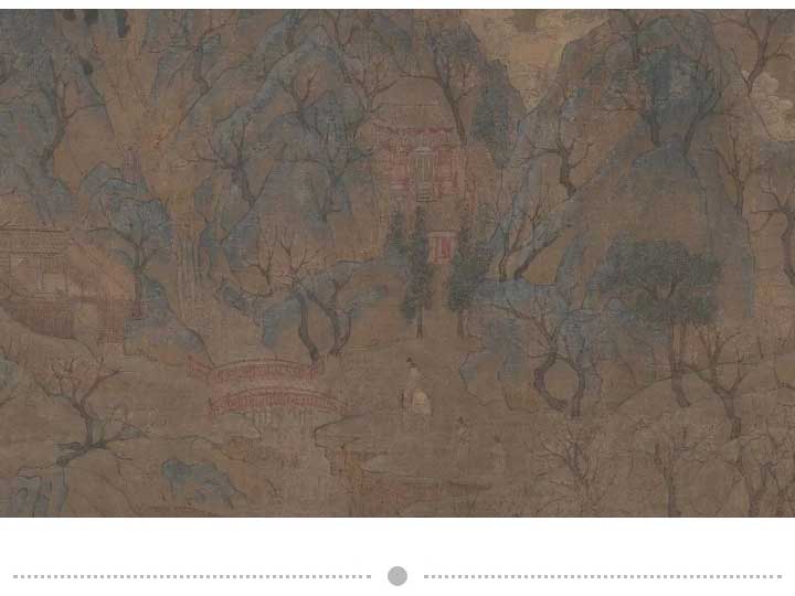 此畫在透視關(guān)系的處理上,不僅表現(xiàn)了空間的一般關(guān)系,也注意到了空間的深度,畫面有“遠(yuǎn)近山川,咫尺千里”之感。