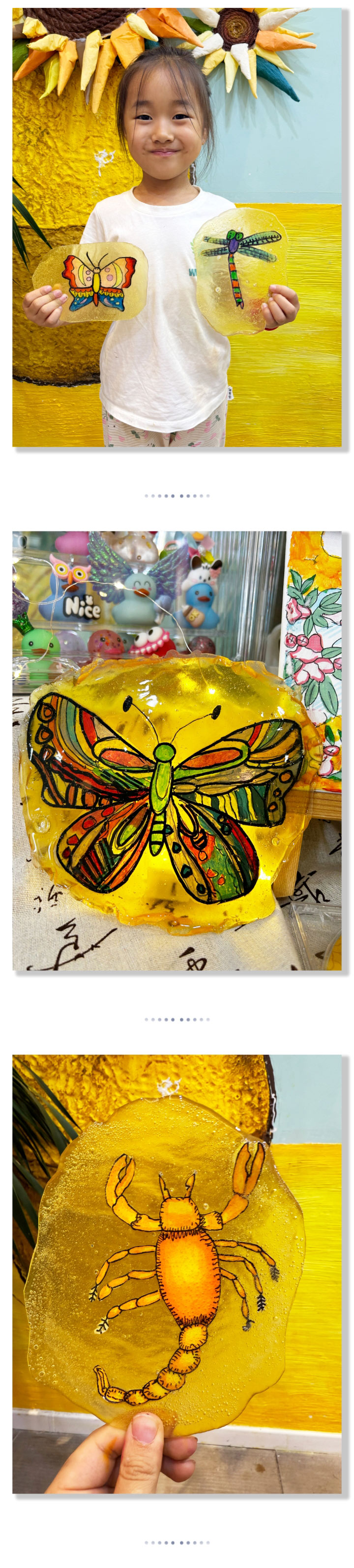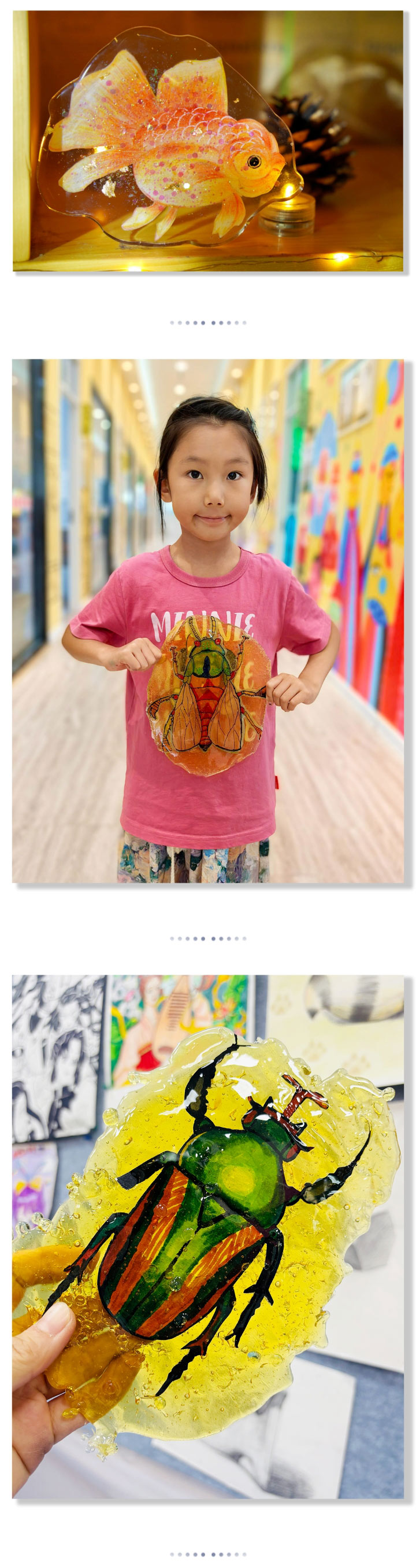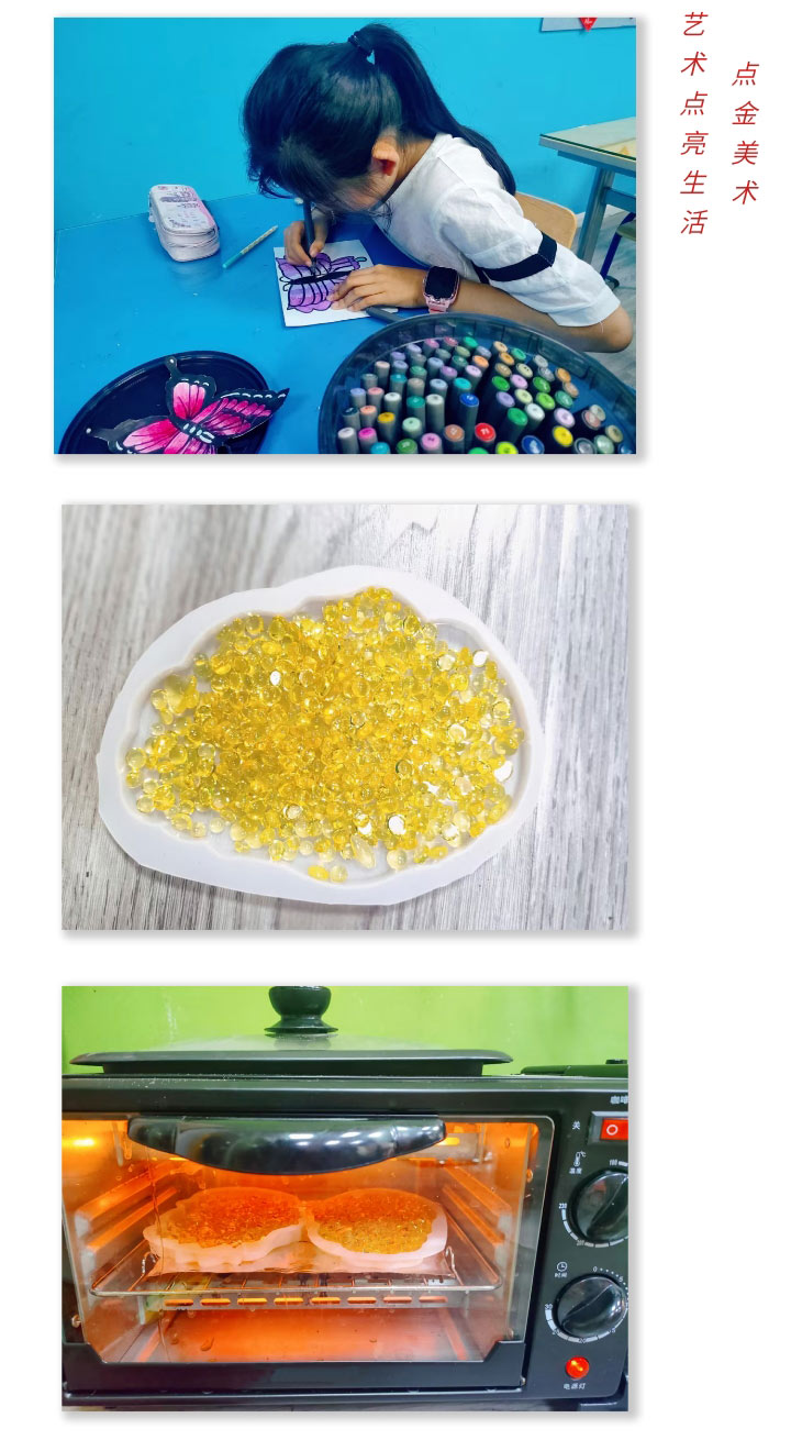 制作“琥珀”不僅能鍛煉動(dòng)手能力,更可以在制作的過程中體會(huì)到時(shí)光的美好,孩子們將喜歡的動(dòng)物、植物細(xì)心描繪,把這些充滿童趣的作品變成“琥珀”。