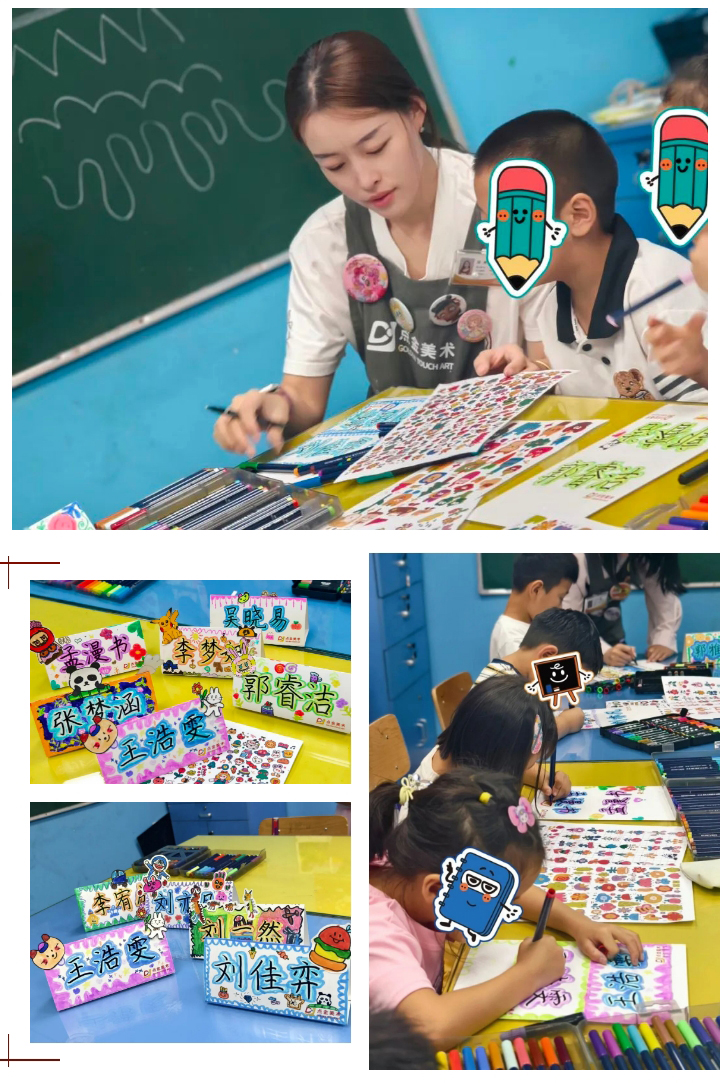 在暑假的小尾巴,點金美術(shù)部分校區(qū)開展了姓名牌制作活動,將書法與美術(shù)巧妙結(jié)合,同時又給即將踏入小學(xué)的孩子們儀式感。