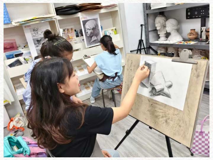 作為素描班教師,面對年齡偏大的學生,杜亞雪老師的秘訣是“因材施教+換位思考”,她深知素描學習難免枯燥,便根據(jù)學生性格調整方式,“對安靜內(nèi)向的孩子,我會多溝通、多鼓勵,像朋友一樣傾聽;對活潑的孩子,則要有松有緊、把握分寸。”
