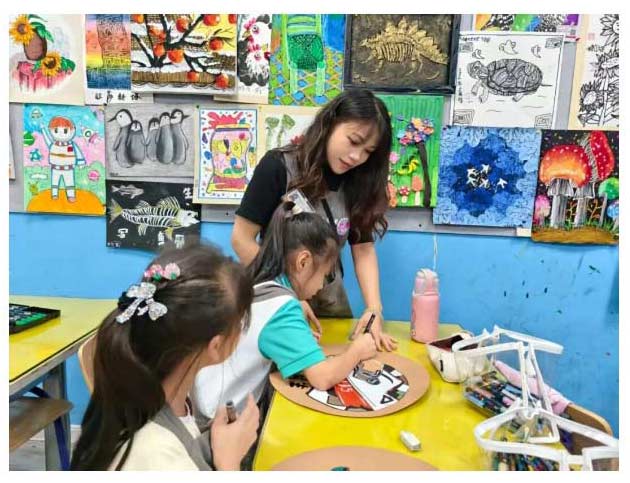 談及入職點金美術的三年,杜亞雪老師的眼中滿是幸福感:“最大的收獲,是在這里找到了專業(yè)與熱愛的契合點?!秉c金美術廣闊的平臺讓她得以充分發(fā)揮國畫專業(yè)功底,無論是課程研發(fā)還是課堂教學,能力都從青澀走向穩(wěn)健。