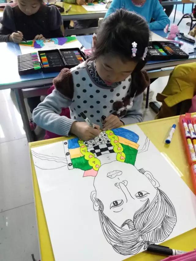 人物線描課堂上,孩子們了解到五官基本的比例以及三庭五眼。通過(guò)學(xué)習(xí)面部比例的繪制方法,了解到只有使用合理的方法,才能更容易地掌握任務(wù)正面部的畫(huà)法、把握人物的特征來(lái)表現(xiàn),為同學(xué)們學(xué)習(xí)素描的造型、用線、透視關(guān)系打下良好的基礎(chǔ)。
