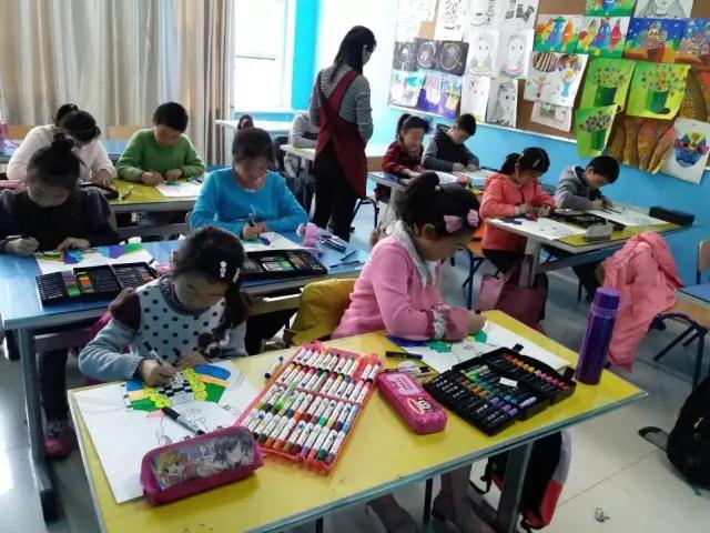 水粉課堂上,孩子們?cè)诶蠋煹闹笇?dǎo)下,接觸到一個(gè)新的領(lǐng)域。通過(guò)水粉筆的運(yùn)用,水和顏料的調(diào)和,調(diào)出薄厚不一的絢麗顏色,從中找到水粉畫(huà)的樂(lè)趣,不僅鍛煉造型能力,而且在一定程度上提升了在色彩上的認(rèn)知。